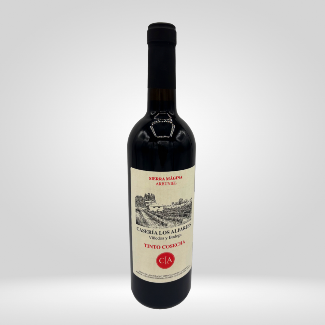 Vino tinto elaborado en Arbuniel, ubicado en Sierra Mágina, a través de una vendimia manual de uvas propias.